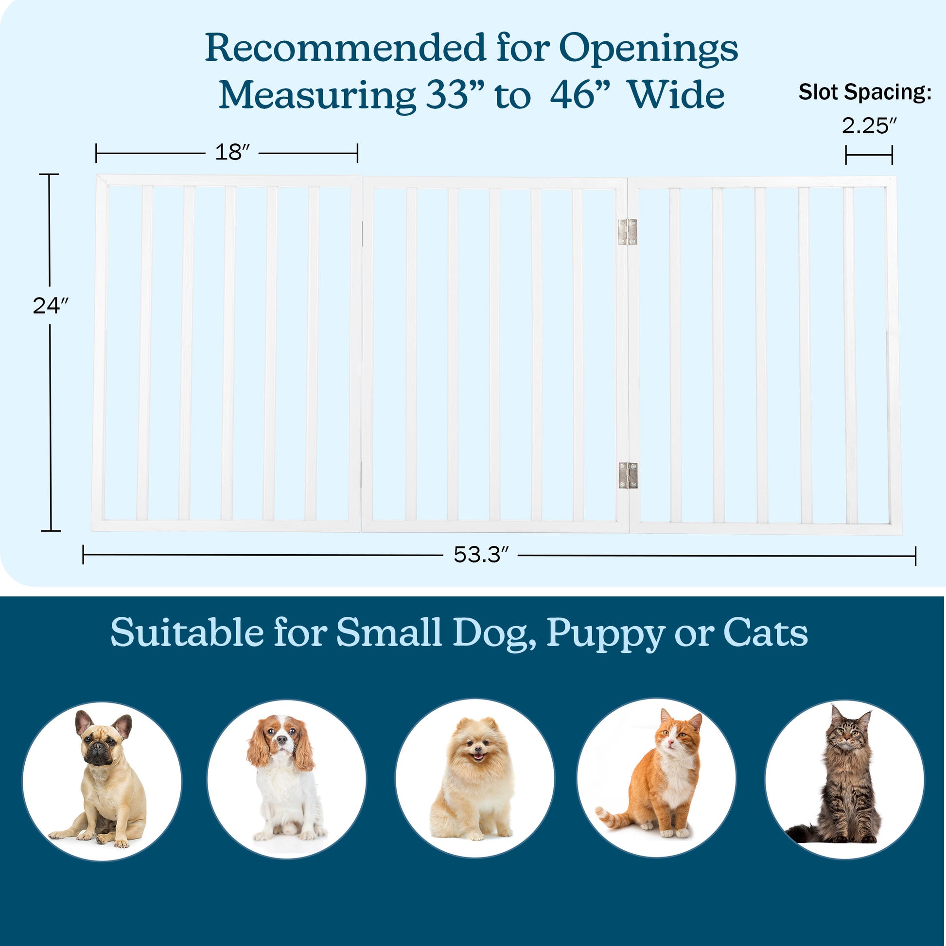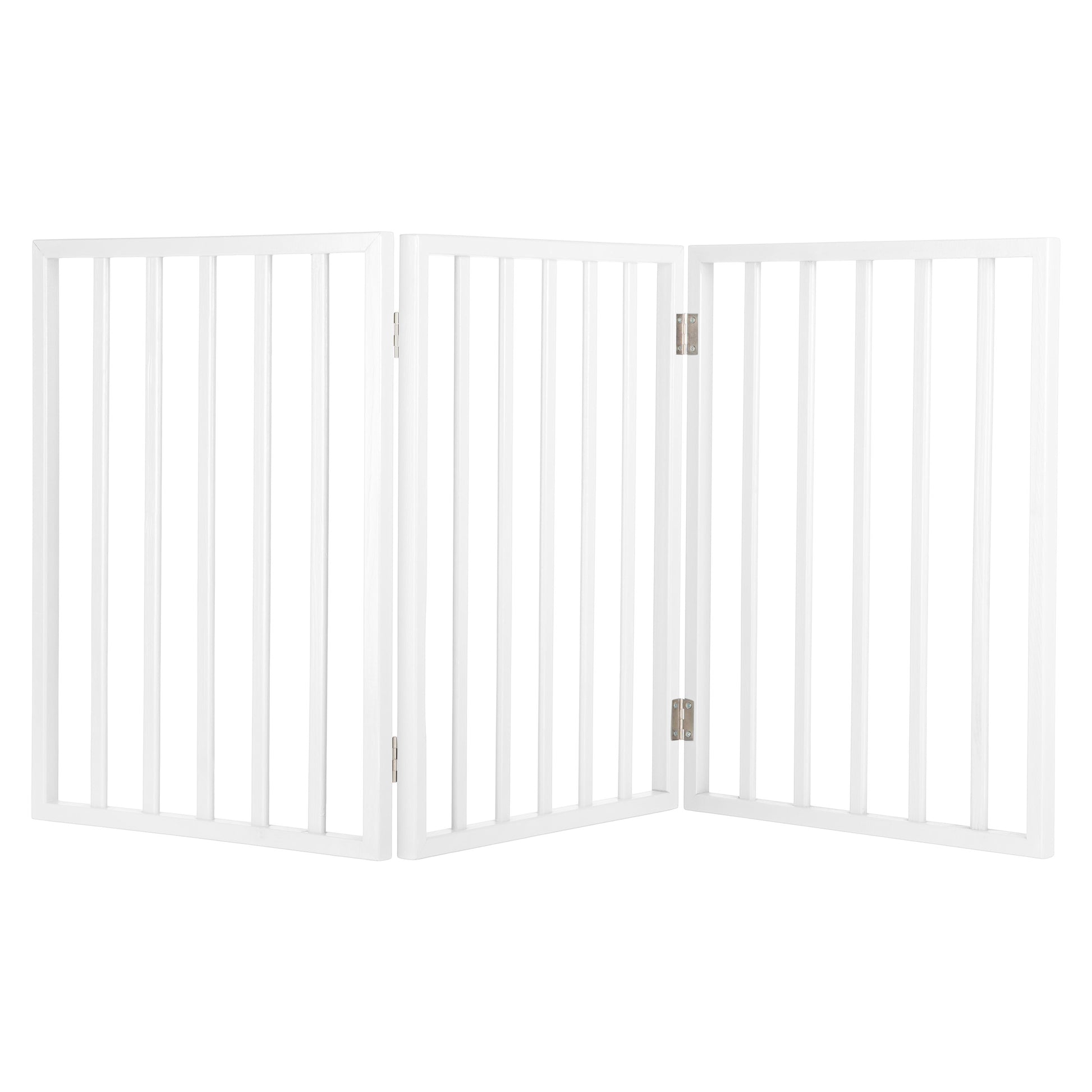 - This versatile free standing pet gate is ideal for use in doorways, at the top or bottom of stairways, in hallways, or any indoor openings 33 to 46-inches-wide