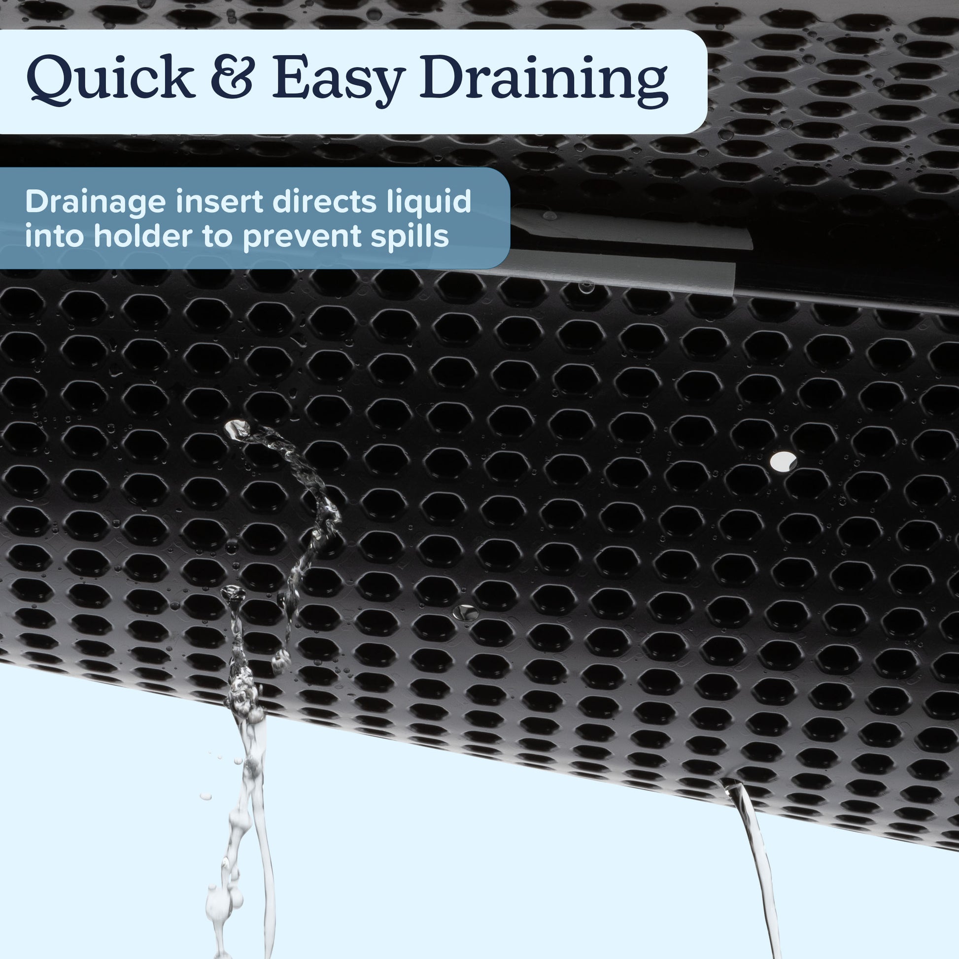 - The artificial dog grass mat sits on top of an odor-resistant cloth mat and a secure plastic drainage insert that allows liquid to empty into the collection tray to avoid messes and spills