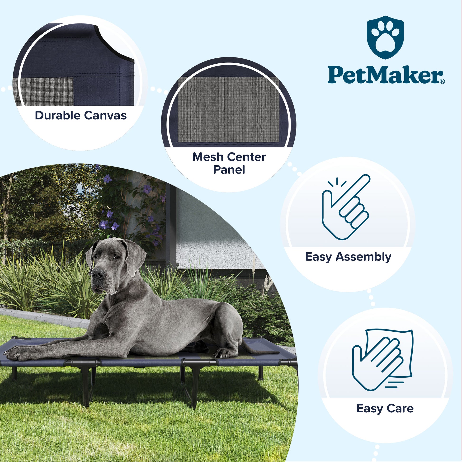 The Bed Cover by PETMAKER is a comfortable and practical sleeping solution for your furry friend. Weather-resistant and perfect for both indoor and outdoor use, the dog bed replacement cover provides excellent ventilation and body temperature regulation for your pet, helping them stay relaxed and happy even in hot or cold temperatures. This cover is meant to be used as a replacement mat for the PETMAKER Elevated Dog Bed (not included).