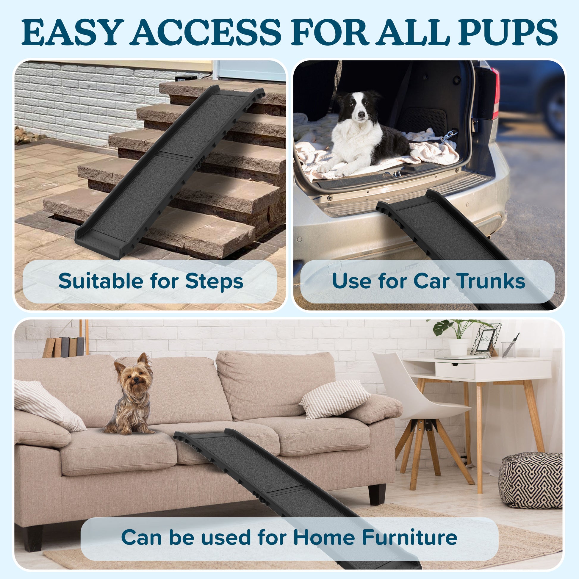 - Made of polypropylene plastic, this portable ramp is ready to use in seconds by simply unfolding it and setting the ramp in the desired position to help your pet