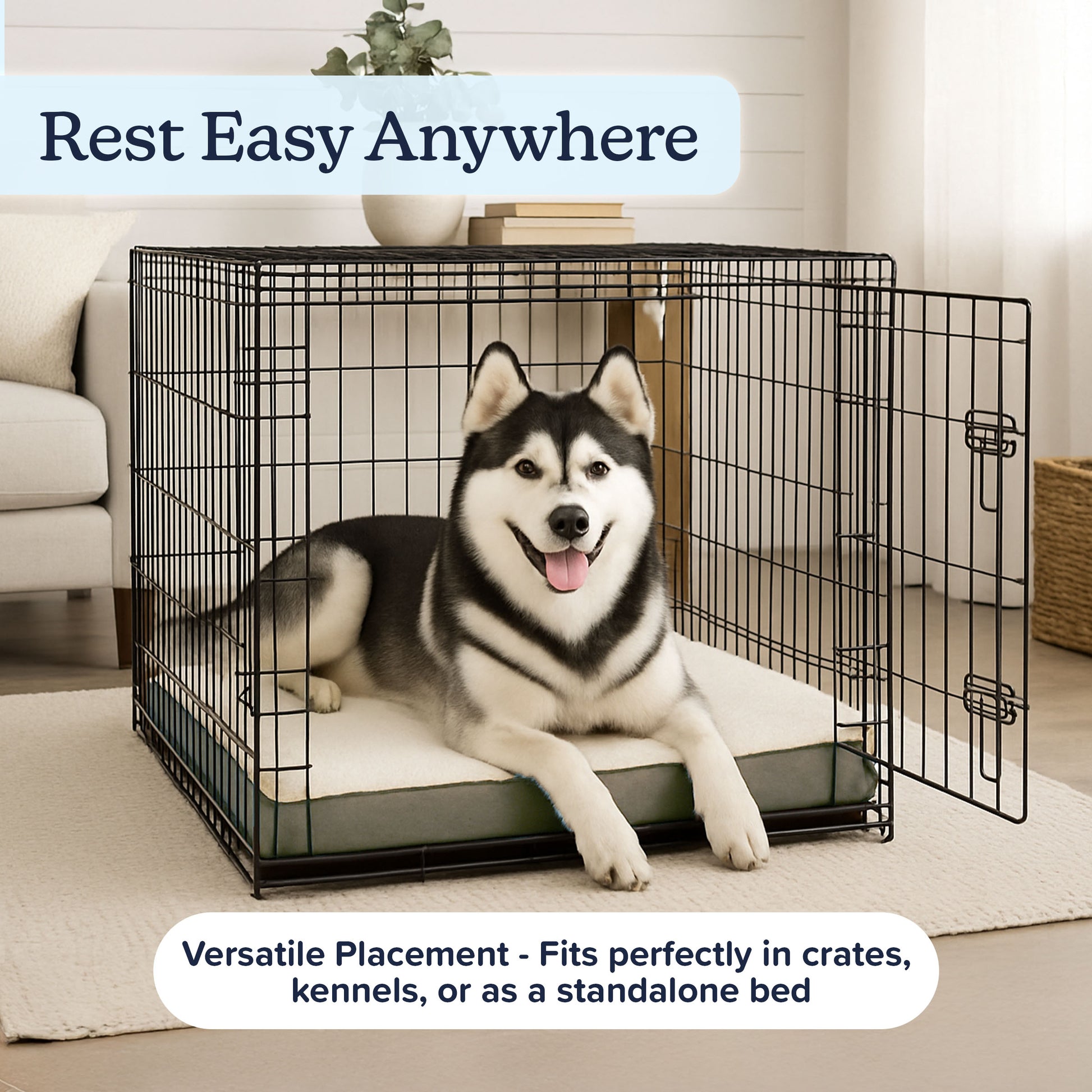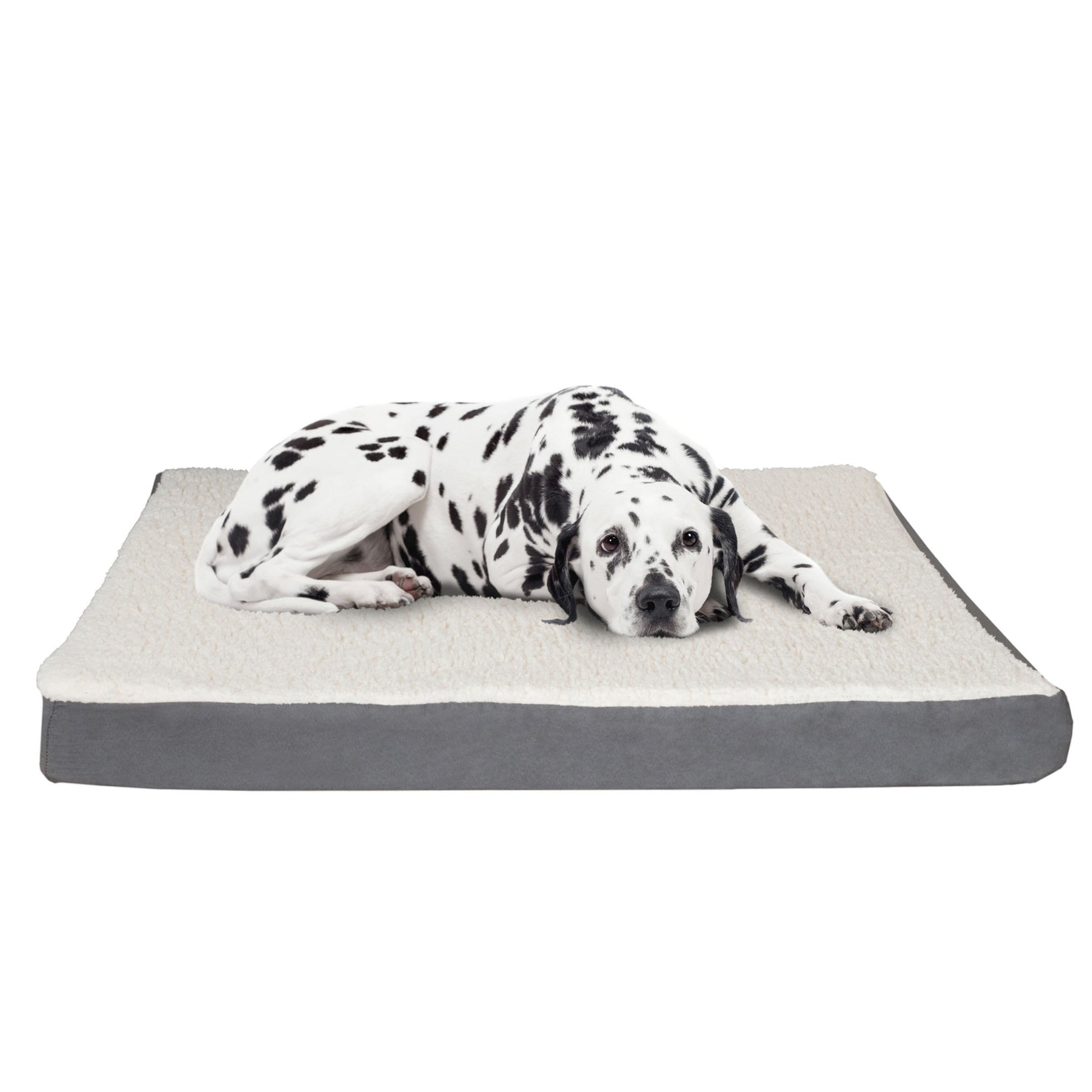 Provide pets with a cozy spot for rest and relaxation with this Orthopedic Dog Bed by PETMAKER featuring two-layer foam construction. Made with a 2-inch layer of memory foam at the base of the pet bed and another 2.75-inch layer of high-density foam supportive of pets between 65 and 100lbs, this washable dog bed makes a great choice for aging pets and large dogs suffering from arthritis, muscle stiffness, joint, and hip dysplasia. This dog bed's plush cover topped with warm, fuzzy sherpa fabric and enhanced with nonskid backing boasts a wraparound zipper for fuss-free removal and easy machine washing as needed.
