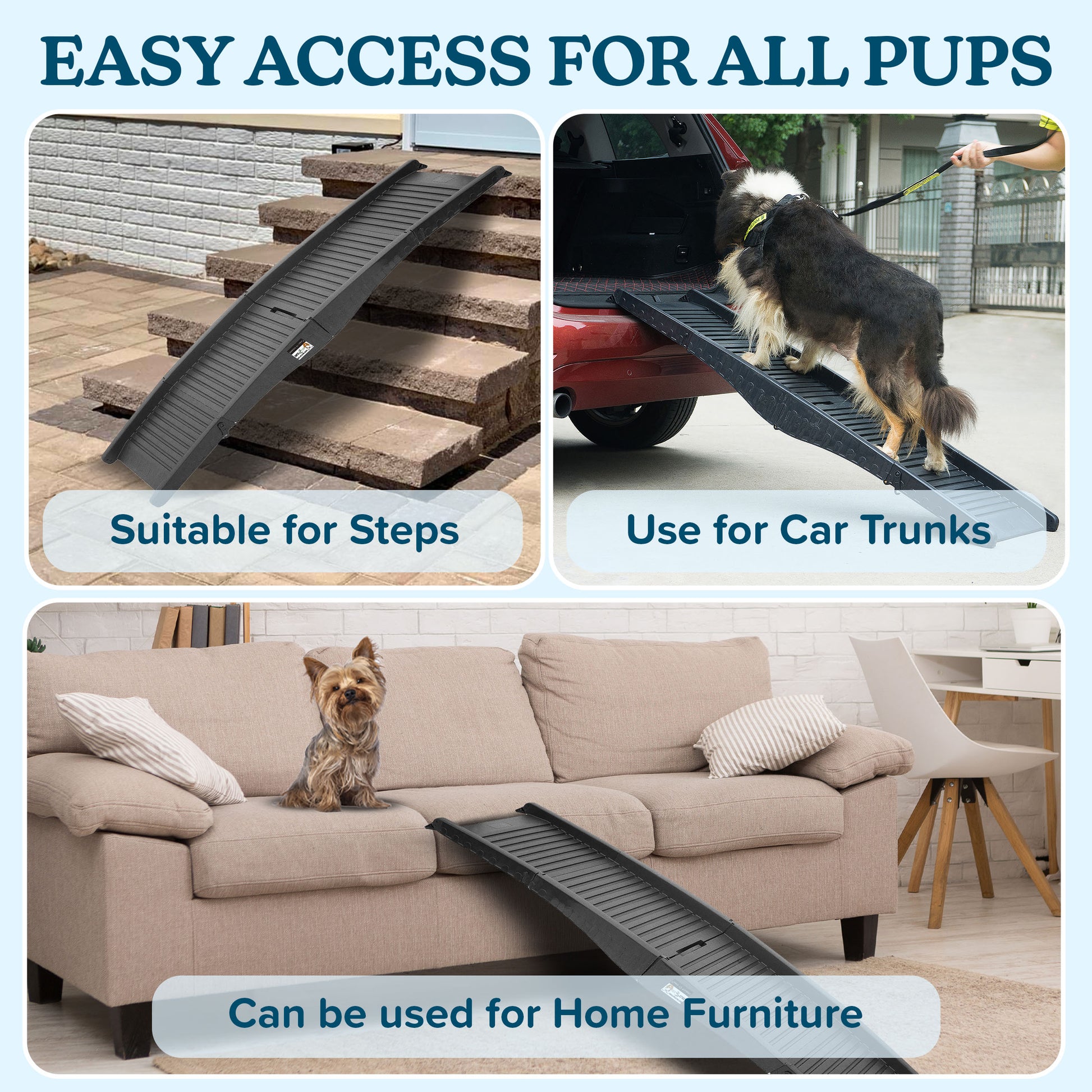 - This car or truck ramp's tri-fold design enables use by just unfolding the pet ramp and setting it in place, letting it double as a dog ramp for beds or sofas