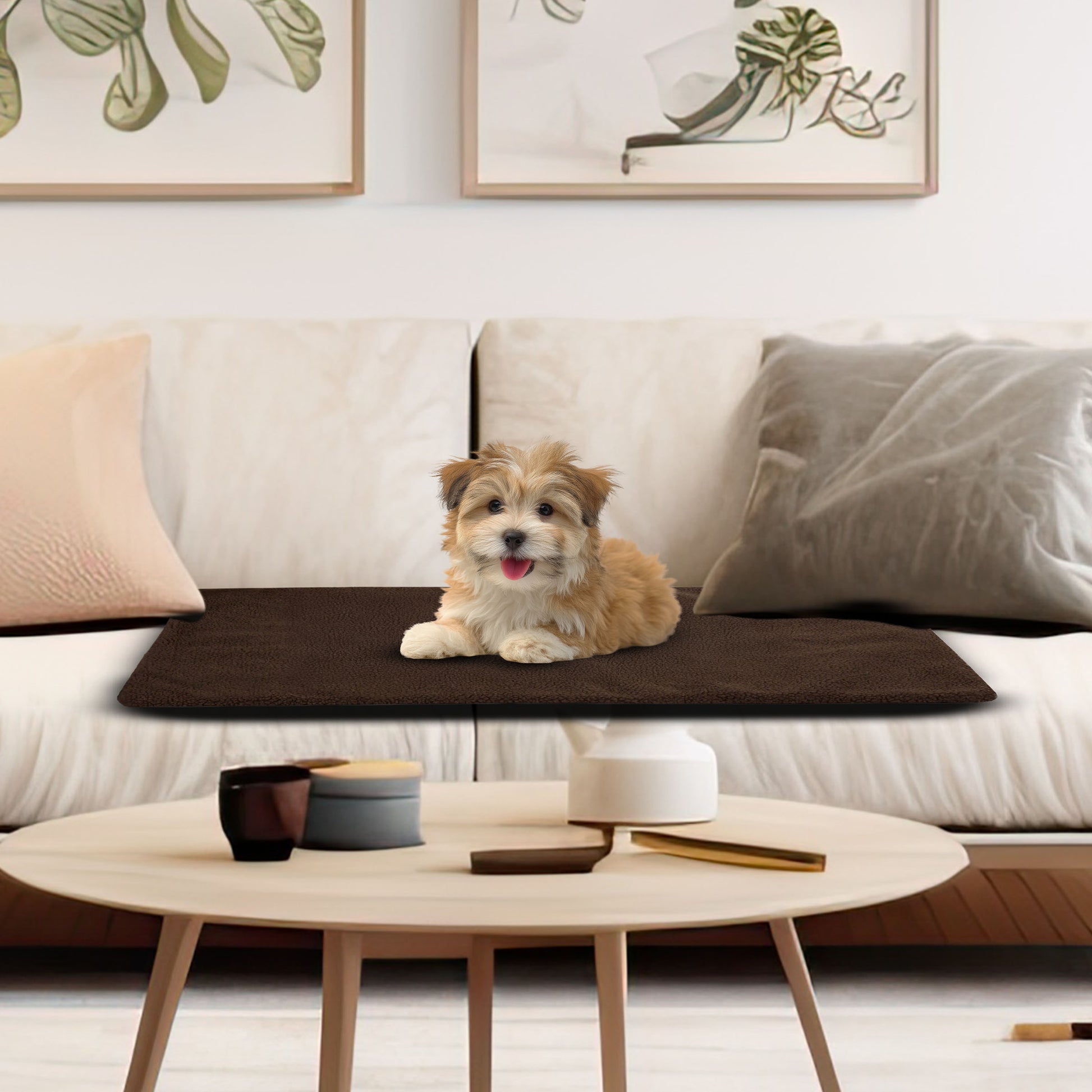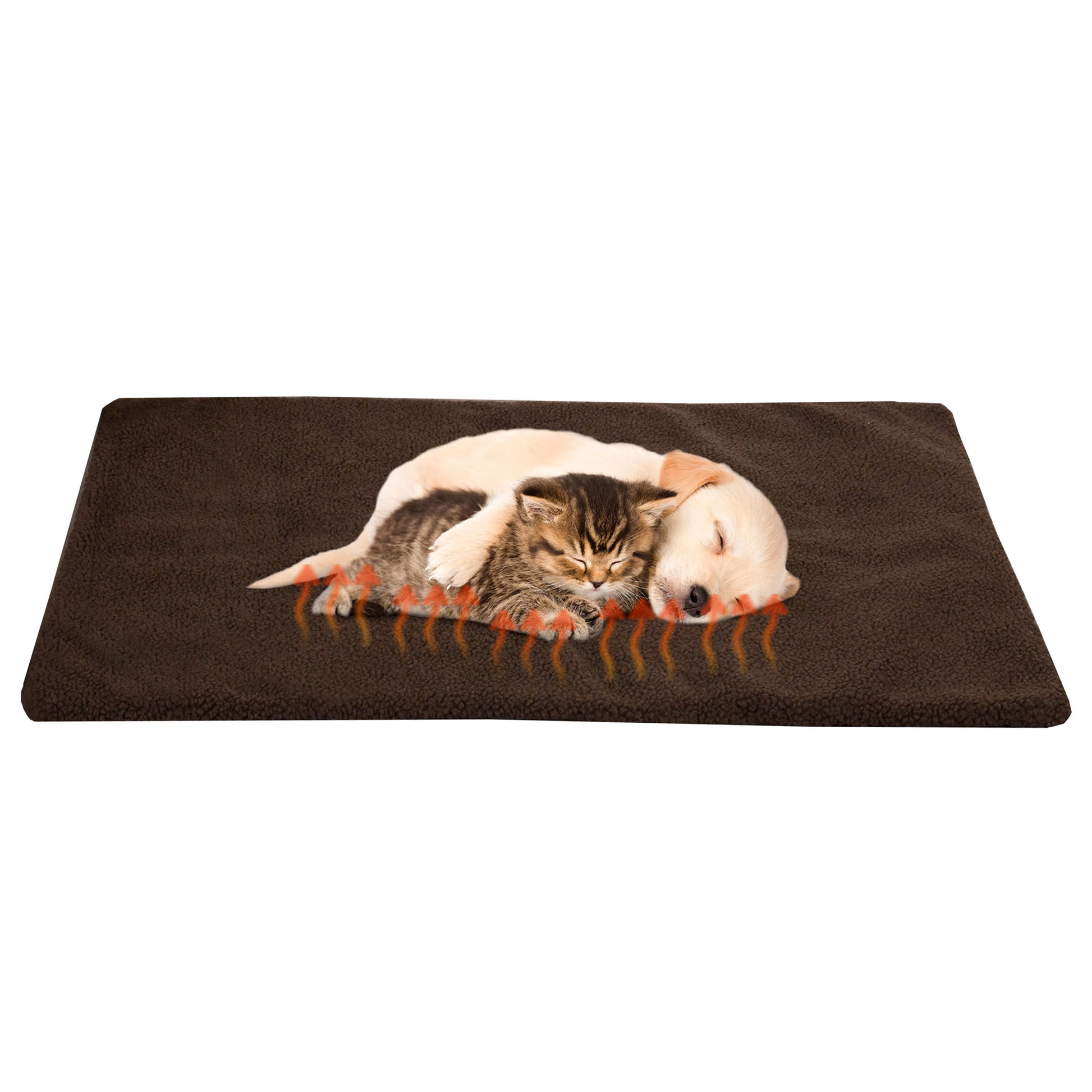 - This self-generating heated dog mat has a 100% polyester Sherpa cover for optimal coziness for your furry pal to snuggle up with all year round