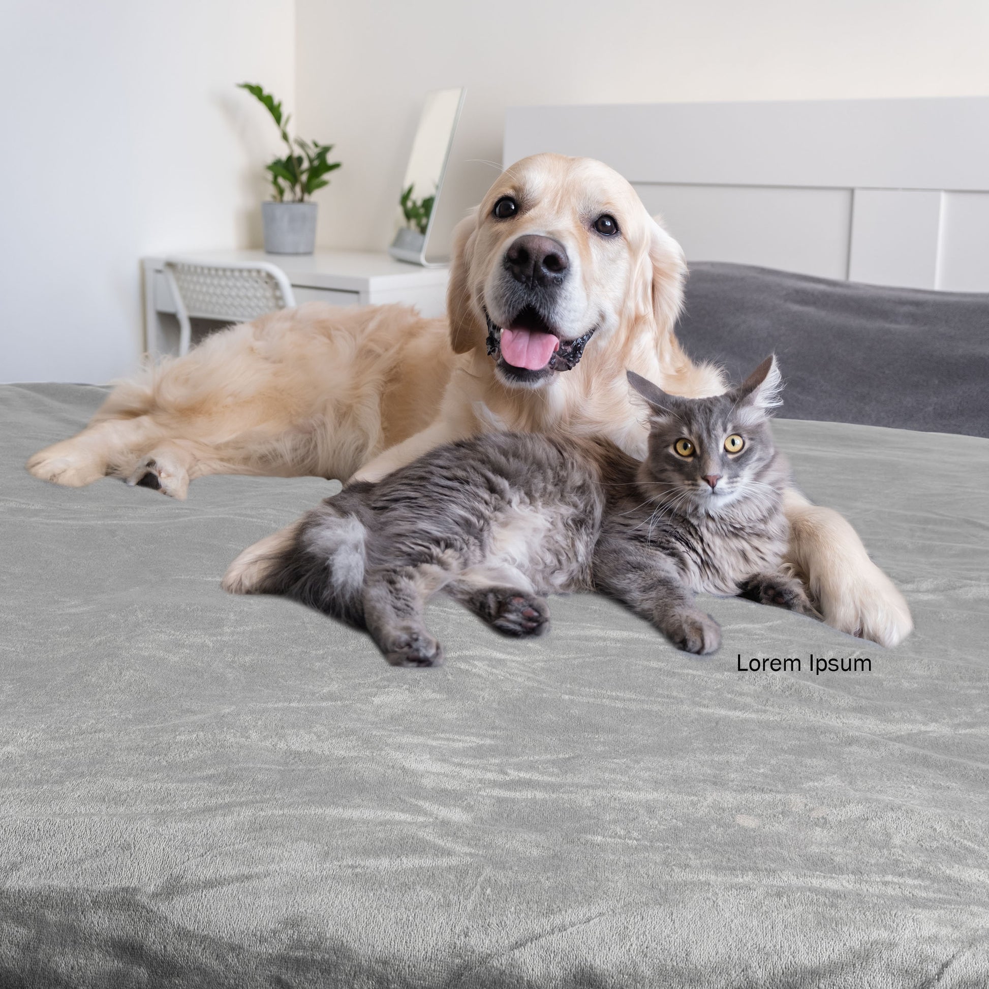 The Dog Blankets for Large Dogs Waterproof by PETMAKER are a cozy and great-looking option to protect your couch or bed from spills, stains, and pet fur. This reversible dog blanket soft has coated solid gray flannel on one side that repels water, and the other side is lined with plush Sherpa fleece that absorbs liquids so you can be confident that nothing will seep onto your furniture. For easy cleaning, these dog blankets are machine washable, making them an excellent addition to your dog supplies. The puppy blankets can act as a waterproof pet blanket, perfect to throw on furniture to keep it free of stains or hair while also serving as an incredibly soft blanket for you and your furry friend to snuggle with.